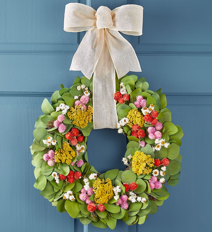 Bring the beauty of a flower-filled meadow into their home with our keepsake preserved wreath. A lively array of blooms is arranged on a lush base of greenery for plenty of natural charm. From the front door to front-and-center on the mantel, this charming décor piece is a true delight.