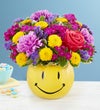 EXCLUSIVE Helping you deliver smiles is what we do…and this feel-good bouquet is a great way to do it! Bunches of blooms in uplifting colors are gathered into our keepsake smiley face container, delivering just the brightness they need to make their day better. Perfect for celebration-worthy moments and everyday sentiments.