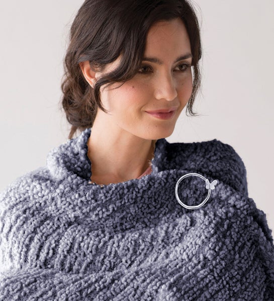 More than just a stylish accessory, a cozy layer that will wrap them in love. Our ultra-soft giving shawl is uniquely designed with two convenient, roomy pockets and comes with a keepsake bookmark inscribed with a message of encouragement. We’ve paired it with a lovely, circular silver pin featuring a delicate butterfly detail–a symbol of love & support–to let them know they’re always on your mind and in your heart.