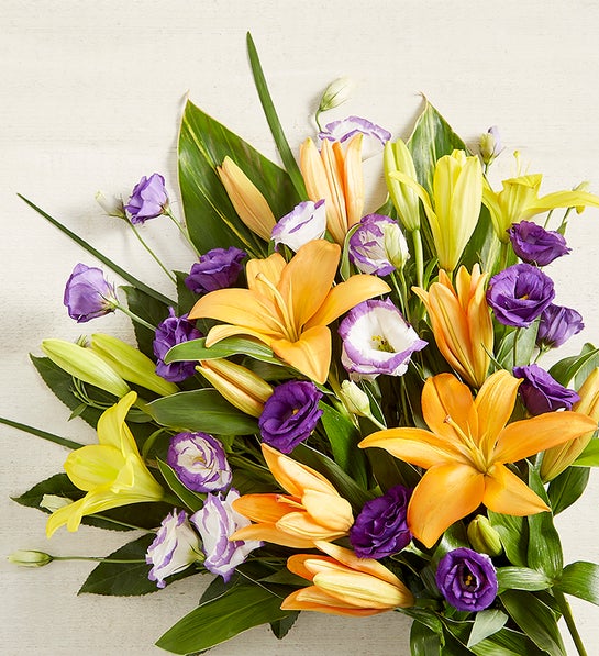 Evoke an island escape with our lush, tropical bouquet. A vibrant mix of blooms and lush green foliage is a wonderful way to send a burst of sunshine.