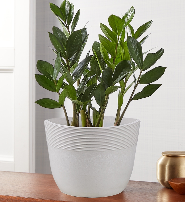 Named for its glossy-green leaves that alternate in a Herringbone fashion, it’s no surprise our ZZ plant is the current darling of décor. Tolerant of neglect and happy with low light, this lush and loveable plant says, “Relax, I’ve got this.”
